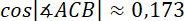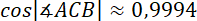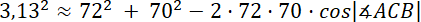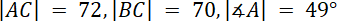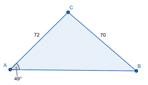 Narysuj rysunek pomocniczy. Oblicz długość boku AB korzystając z twierdzenia cosinusów, zapisz dwa przypadki. Następnie skorzystaj ponownie z tego twierdzenia i wyznacz miarę kąta ACB. Z własności sumy kątów w trójkącie wyznacz miarę ostatniego kąta tego trójkąta.
