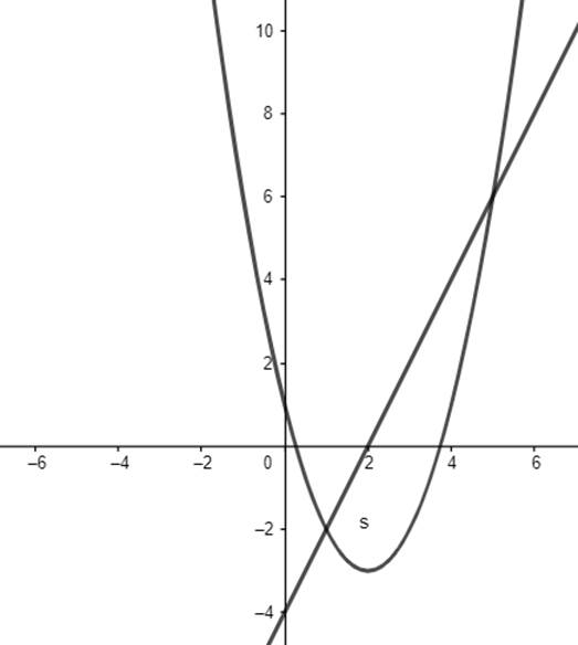 Oblicz układ równań metodą podstawiania. Następnie rozwiąż równanie kwadratowe i zauważ, że masz dwa rozwiązania. Kolejno we wspólnym układzie współrzędnych narysuj obie funkcje – liniową i kwadratową i zauważ, że mają one dwa punkty wspólne, które odpowiadają rozwiązaniom układu.