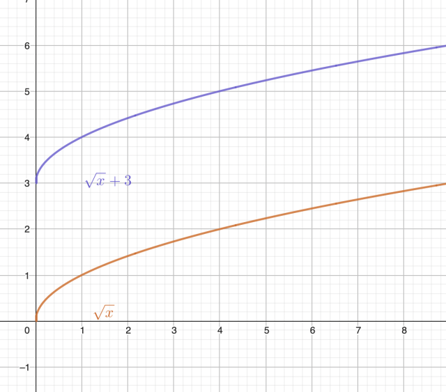 Zauważ, że wykres funkcji g jest przesunięciem wykresu funkcji f o 3 jednostki w górę.