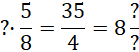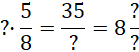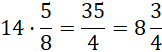 Najpierw zauważ, że 35 z licznika zamienia się na 8 całości i jeszcze jakiś ułamek, 35 podzielone tylko przez 4 da 8 całości. Mianownik w dwóch ostatnich etapach musi więc być równy 4. Skoro mianownik w dwóch ostatnich krokach to 4, a w pierwszym to 8, to oznacza, że skrócono początkowy ułamek przez 2. Zamiast 35 w pierwszym etapie jest 35 · 2 = 70. Żeby dostać 70, to 5 należy pomnożyć przez 14.