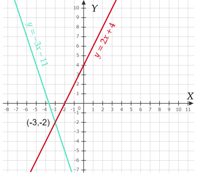 W tym zadaniu musisz rozwiązać układ równań, a następnie naszkicować równania obu prostych
