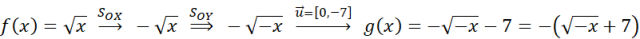 , przekształć f(x) przez symetrię względem osi OX, przesuń równolegle o wektor