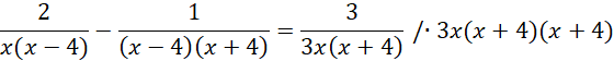 Rozpisujemy założenie i je rozwiązujemy. Następnie przemnażamy przez mianowniki ułamków algebraicznych i rozwiązujemy równoważne równanie. Otrzymana rozwiązania porównujemy z założeniami i zapisujemy końcową odpowiedź.