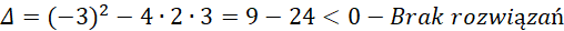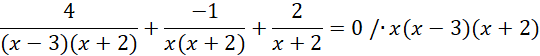 Rozpisujemy założenie i je rozwiązujemy. Następnie przemnażamy przez mianowniki ułamków algebraicznych i rozwiązujemy równoważne równanie. Otrzymana rozwiązania porównujemy z założeniami i zapisujemy końcową odpowiedź.