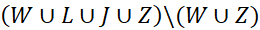 ? Niech W oznacza zbiór ankietowanych osób, które lubią wiosnę, L - zbiór tych, którzy lubią lato, J - zbiór miłośników jesieni, Z - miłośników zimy. Wyniki przedstawiono na diagramie.