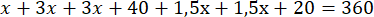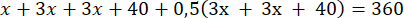 0,5(3x + 3x + 40) – miara kąta przy wierzchołku A.