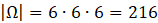 , czyli ilość wszystkich możliwych wyników podczas trzykrotnego rzutu kostką.