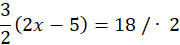 Niech x cm to będzie długość dłuższej podstawy trapezu. Wtedy krótsza podstawa to będzie x – 5 cm. Wysokość równa jest 3 cm, a pole dane jest wyrażeniem: