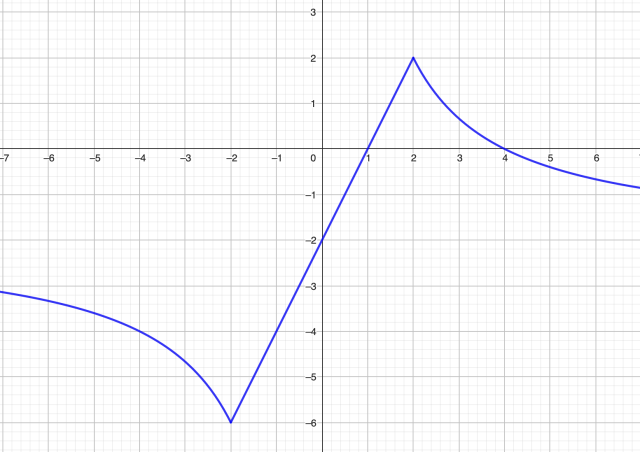 Teraz przesuń wykres f o 2 jednostki w dół, aby otrzymać wykres funkcji g: