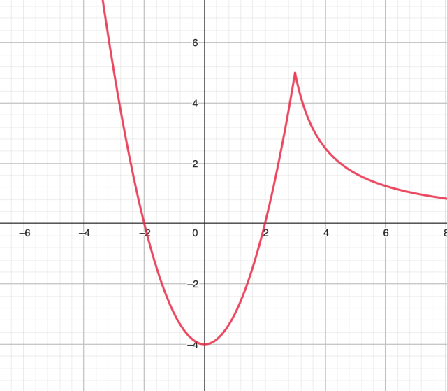 Zauważ, że wykres funkcji g jest funkcją stałą, równoległą do osi OX, zatem te wykresy będą miały trzy punkty wspólne, dla takich wartości funkcji, które powtarzają się trzy razy. Zatem