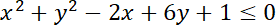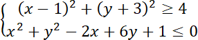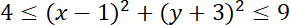Pierwsza nierówność opisuje zbiór punktów na zewnątrz koła o środku