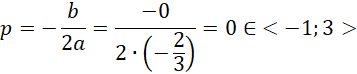 Sprawdzamy, czy wierzchołek paraboli należy do przedziału: