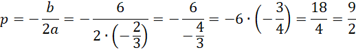 x wierzchołka, czyli p, jest x dla którego klatka ma największe pole. Wylicz p korzystając ze wzoru.