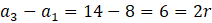 Zauważ, że kolejny wyraz ciągu jest większy o r. Więc trzeci i pierwszy wyraz tego ciągu różnią się o 2r.