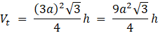 Objętość graniastosłupa o podstawie trójkąta równobocznego o boku 3a