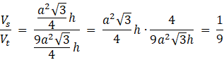 W graniastosłupie prawidłowym trójkątnym wycięto graniastosłup prawidłowy sześciokątny. Znajdź stosunek ich objętości.