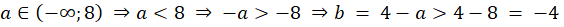 Z równania wyznacz liczbę b. Następnie skorzystaj z podanego przedziału dla liczby a, zamień ten warunek na nierówność i przekształć ją tak, by można było uzyskać po lewej stronie nierówności liczbę b. Uzyskany warunek dla liczby b zapisz jako przedział.