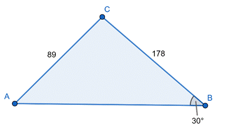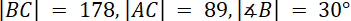 Narysuj rysunek pomocniczy. Oblicz miary kątów tego trójkąta korzystając z twierdzenia sinusów oraz z własności sumy kątów w trójkącie. Następnie zastosuj ponownie twierdzenie sinusów i wyznacz długość boku AB.