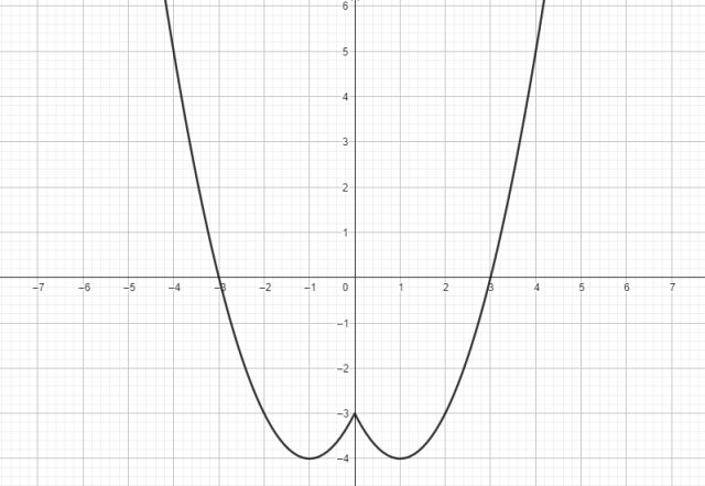 Zastosuj przekształcenie wykresu funkcji . Symetrycznie względem osi OY odbij część wykresu znajdującą się po prawej stronie osi OY na lewą stronę osi OY, zastępując istniejącą już tam część wykresu.