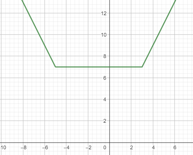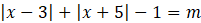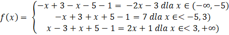 Aby rozwiązać równanie, naszkicuj wykres funkcji f. W tym celu zapisz jej wzór, dzieląc dziedzinę na przypadki, w zależności od znaków wyrażeń pod wartościami bezwzględnymi. Następnie naszkicuj wykresy funkcji liniowych odpowiednich dla każdego przedziału. Z wykresu funkcji f możesz odczytać, że funkcja przyjmuje nieskończenie wiele wartości dla m równego 7.