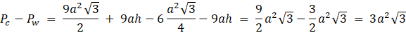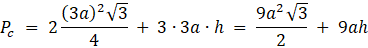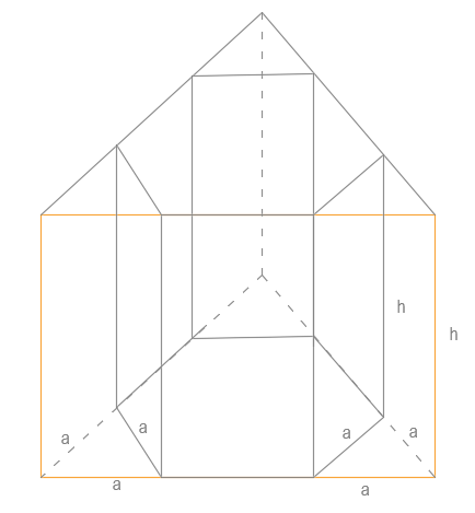 Obecnie pole powierzchni składa się z 6 trójkątów równobocznych o boku a i prostokątnych ścian o wymiarach a x h