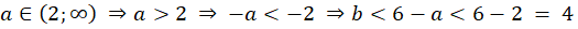 Z nierówności wyznacz liczbę b. Następnie skorzystaj z podanego przedziału dla liczby a, zamień ten warunek na nierówność i przekształć ją tak, by można było uzyskać po lewej stornie nierówności wyznaczone wcześniej oszacowanie liczby b. Uzyskany warunek dla liczby b zapisz jako przedział.
