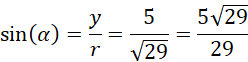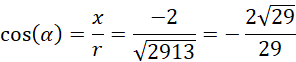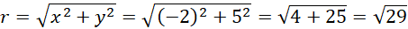 Wyznacz funkcje trygonometryczne kąta α w położeniu standardowym, wiedząc, że punkt P(-2, 5) znajduje się na ramieniu końcowym tego kąta.