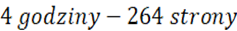 Należy oznaczyć x jako ilość stron przeczytanych w godzinę, wiedząc, że w cztery godziny przeczyta 264 strony, należy ułożyć proporcję i obliczyć x .