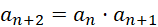 Każdy kolejny wyraz ciągu to iloczyn dwóch poprzednich wyrazów.