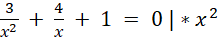 w celu usunięcia ułamków. Następnie obliczamy rozwiązania równania kwadratowego z pomocą delty.