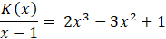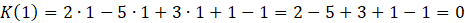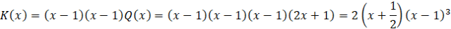 1 jest jedynym całkowitym pierwiastkiem wielomianu K(x). Jest to pierwiastek trzykrotny.