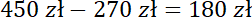 Oblicz różnicę ceny początkowej i ceny po obniżce. Następnie oblicz, jaki procent ceny początkowej stanowiła obniżka. Wpisz do licznika wartość obniżki, do mianownika cenę początkową i skróć ułamek tak, aby w mianowniku pojawiło się 100. Wtedy licznik będzie odpowiadał obniżce ceny w procentach.
