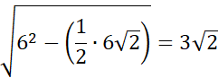 Następnie, korzystając z tego samego twierdzenia, oblicz wysokość ostrosłupa jako przyprostokątną trójkąta prostokątnego, przyjmując połowę przekątnej podstawy jako drugą przyprostokątną i krawędź boczną jako przeciwprostokątną tego trójkąta.