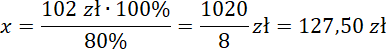 Wiesz, że ta kwota jest pomniejszona o 20% podatek, Oblicz, jaka była pełna kwota, układając proporcję: