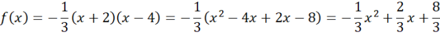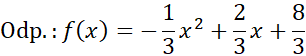 W tym zadaniu zapisz wzór funkcji w postaci ogólnej. Funkcja ta jest funkcją kwadratową, o zbiorze wartości (-∞; 3>, a jej miejscami zerowymi są liczby -2 i 4.