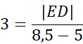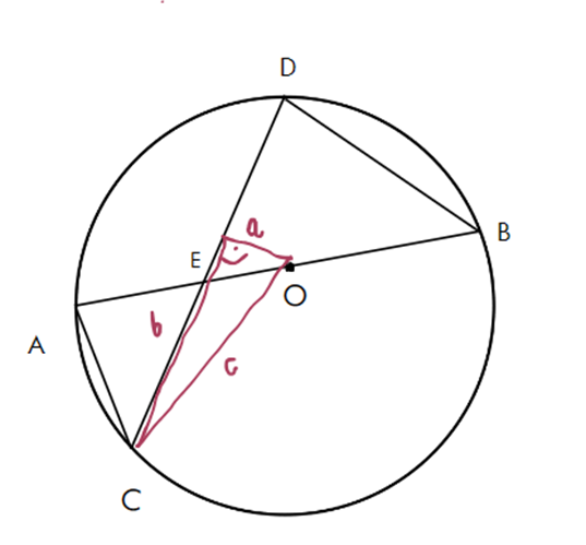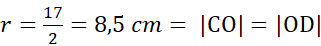 , a następnie udowodnij, że trójkąty ACE i EBD są podobne. Oblicz ich skalę podobieństwa na podstawie której znajdź długości boków CE i ED. Oblicz odległość środka koła od środka cięciwy CD z twierdzenia Pitagorasa.