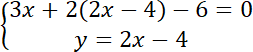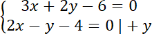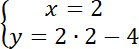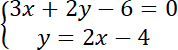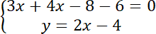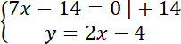 Wyznacz punkt przecięcia się prostych tworząc układ równań, a następnie rozwiąż go: