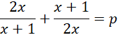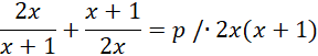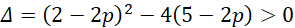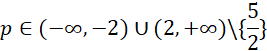 Najpierw zakładamy, że mianowniki są różne od zera. Następnie przemnażamy obustronnie przez mianowniki, doprowadzając równoważnie do równania kwadratowego zależnego od parametru p. Wymagamy, aby miało ono dwa różne rozwiązania, zatem współczynnik przy najwyższej potędze musi być różny od 0, gdyż w przeciwnym przypadku równanie zostanie zredukowane z kwadratowego do liniowego, a to ma co najwyżej jedno rozwiązanie. Następnie pracujemy już z równaniem kwadratowym, od którego wymagamy, aby miało dwa różne od siebie rozwiązania, czyli delta musi być silnie większa od 0, nie równa, gdyż wtedy mamy jedno rozwiązanie podwójne, czyli innymi słowy, dwa te same rozwiązania. Doprowadzamy do nierówności kwadratowej, która rozbijamy do postaci iloczynowej, pomocniczo rysujemy wykres i zaznaczamy przedziały, dla których wykres tej funkcji, przyjmuje wartości większe od 0. Końcową odpowiedź zapisujemy z uwzględnieniem wszystkich warunków.