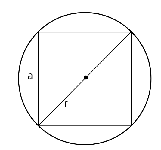 Przekątna kwadratu wpisanego w okrąg jest równa średnicy tego okręgu.