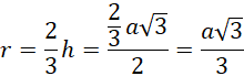 W trójkącie równobocznym wpisanym w okrąg promień jest równy dwum trzecim wysokości tego trójkąta.