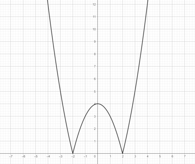 Wychodząc od podstawowego wzoru paraboli korzystając z dostępnych przekształceń doprowadź do postaciZnacząco ułatwi Ci to rysowanie wykresu funkcji. W rozwiązaniu wykorzystujemy przesunięcie o wektor: dla przesunięcie o powoduje powstanie oraz przekształcenie , czyli odbicie wszystkich wartości ujemnych przyjmowanych przez funkcję nad oś OX. Następnie sprawdzaj ile punktów wspólnych posiada prosta z wykresem funkcji dla kolejnych m.