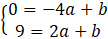 Wylicz a i b z powstałych równań.
