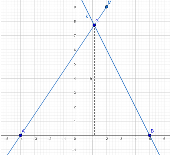 Zauważ, że punkt C jest miejscem przecięcia prostych AM i k. Zacznij od wyznaczenia równania prostej AM.