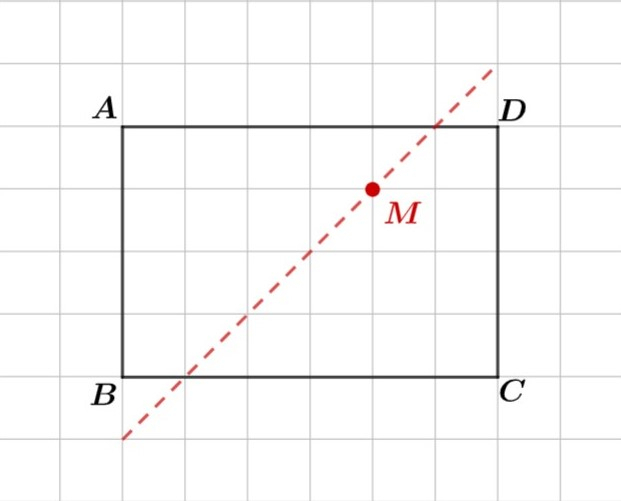 W tym zadaniu musisz przedstawione figury podzielić na dwa przystające czworokąty, tak by punkt M znalazł się na linii podziału. Następnie musisz obliczyć jej pole.
