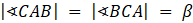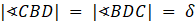 Długości odcinków AB, BC, CD są sobie równe. Podaj miarę kąta DAC w zależności od kąta α.