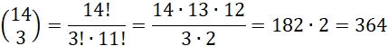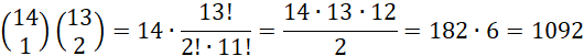 W sytuacji, kiedy cyfra 1 jest na pierwszym miejscu tej liczby, musisz wybrać jedno miejsce spośród 14 na „obstawienie” 2 i wybrać spośród 13 pozostałych miejsc dwa na pozostałe 2 jedynki, reszta cyfr wynosi zero: