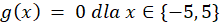 Zauważ, że miejscami zerowymi funkcji g są -5 i 5.