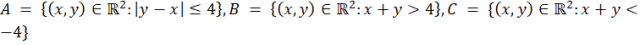 Przekształć warunki podane dla zbiorów i wyznacz w układzie współrzędnych obszar odpowiadający każdemu z nich. Finalnie: