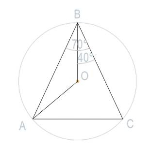 Na okręgu zaznaczono punkty A,B,C podaj miarę kąta AOB, wiedząc, że |∢OBC | = 40° | ∢ ABC | = 70°