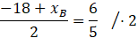 Duży nawias rozbij na dwa równania. W pierwszym wylicz współrzędną x punktu B.